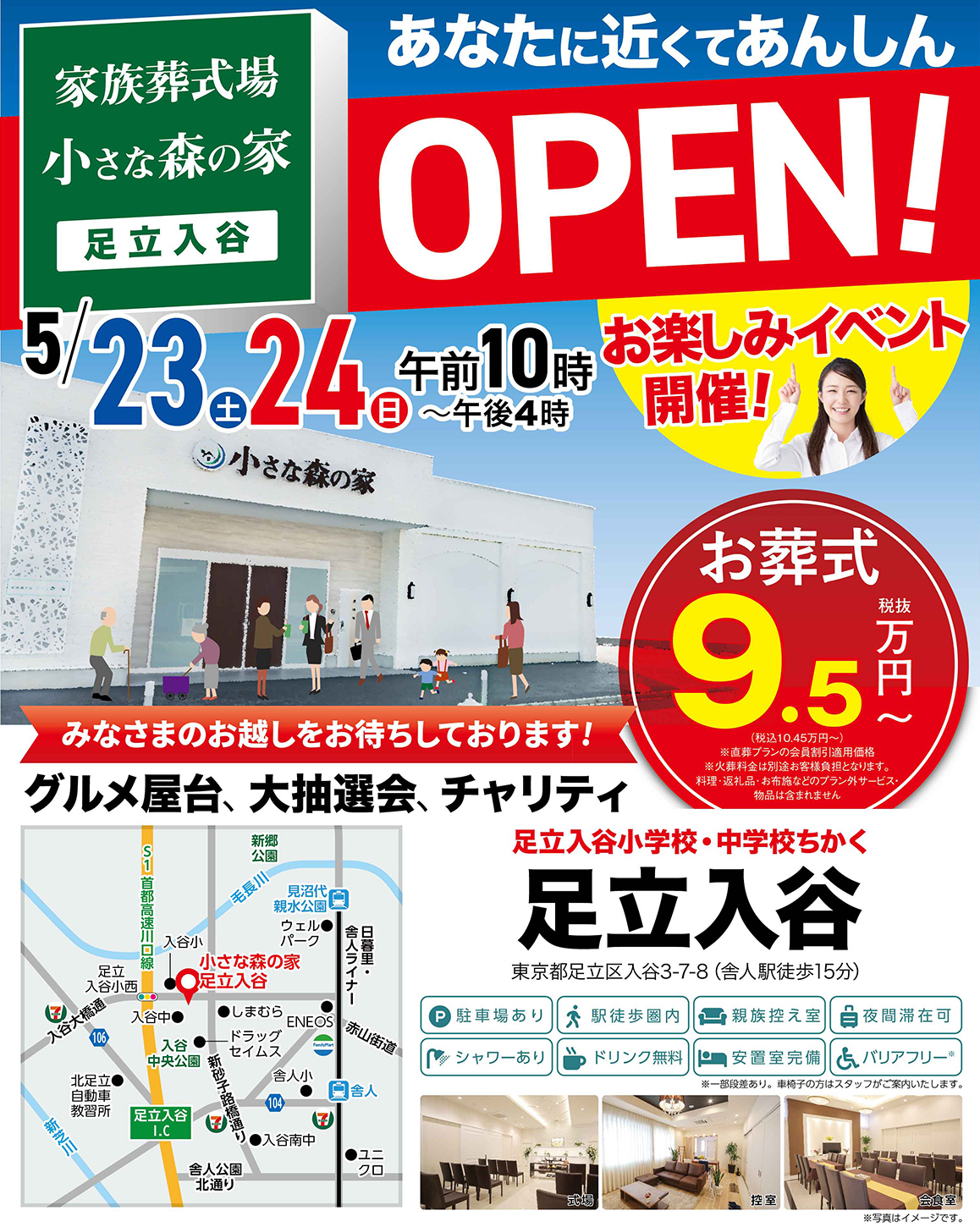 5月23日(土)、東京都足立区に3店舗目となる足立入谷がオープンします。オープンに際し2日間にわたって、グルメ屋台・大抽選会・チャリティバザーなど、お得な企画を用意したお楽しみオープンイベントを開催いたします。予約不要でどなたでもご参加いただけますので、この機会にぜひご来館ください。