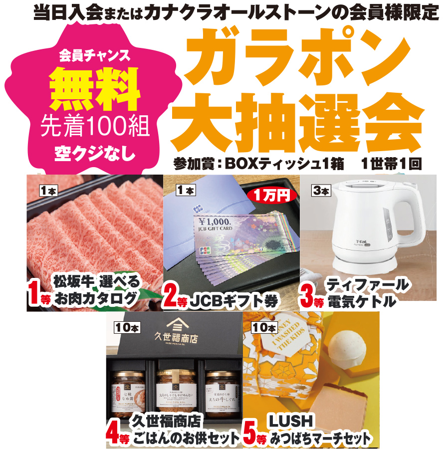当日は会員様向けに豪華賞品が当たる大抽選会を開催いたします。当日【無料会員】に入会された方も対象となります!ハズレなしのお得な抽選会ですのでぜひご参加ください。
