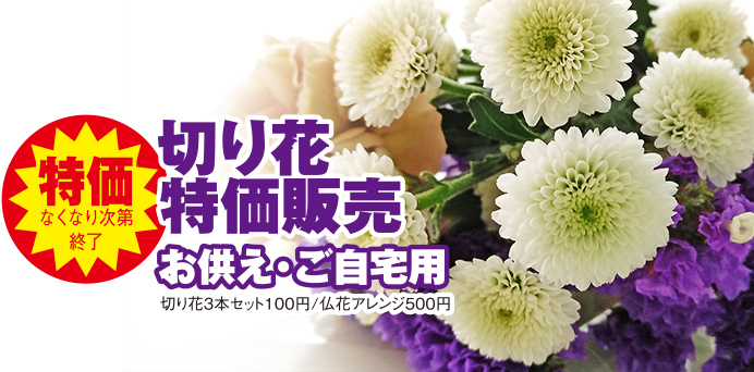お供えのお花を大特価でご用意いたしました。なくなり次第終了なのでお早目に。