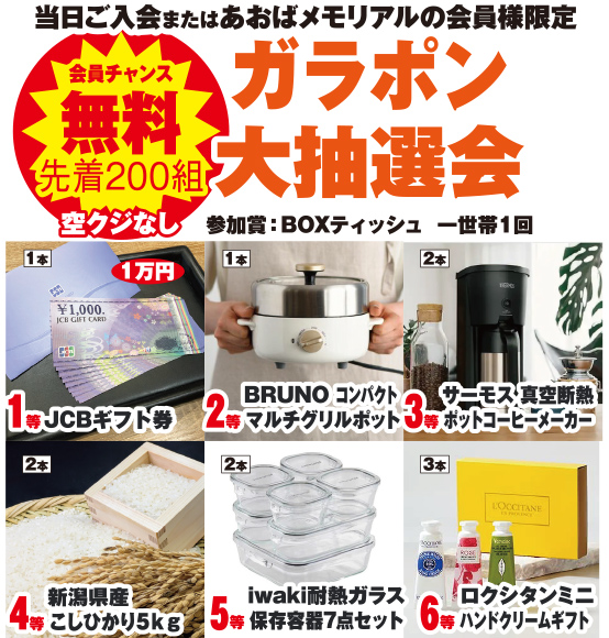 豪華賞品が当たる大抽選会!会員様向けに豪華賞品が当たる大抽選会を開催いたします。当日【無料会員】に入会された方も対象となります!ハズレなしのお得な抽選会ですのでぜひご参加ください。