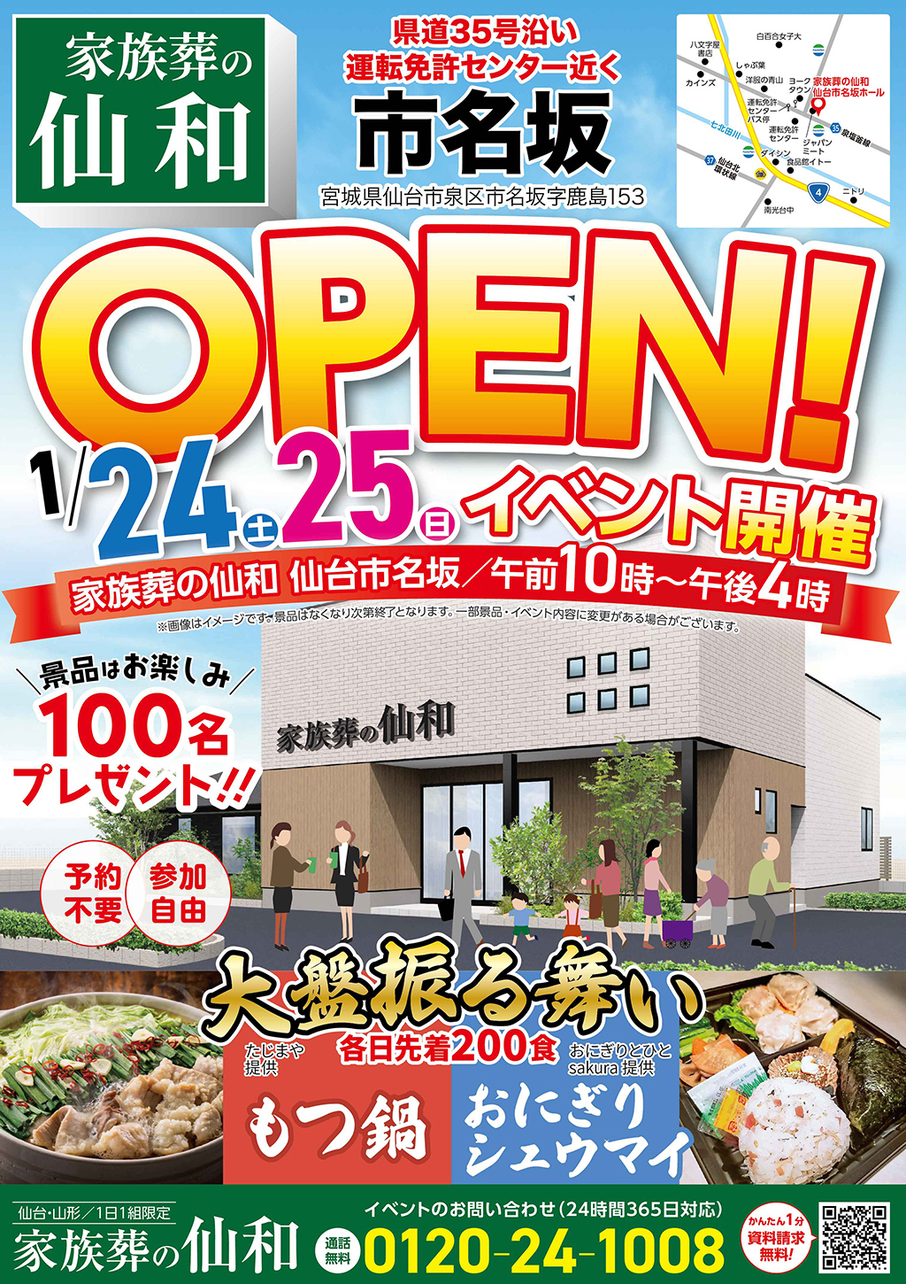 誰でも参加できる!家族葬の仙和 仙台市名坂オープンイベント 1月24日(土)、宮城県仙台市に19店舗目となる仙台市名坂がオープンします。オープンに際しまして、絶品グルメの大盤振る舞い・大抽選会・チャリティバザーなどお得な […]